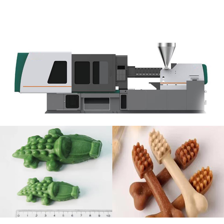 Een injectie het vormen machine, of (de machine van het Injectieafgietsel), die ook als een injectiepers wordt bekend, is een machine want het productiehuisdier producten door het injectie het vormen proces behandelt. Het bestaat uit twee belangrijke delen, een injectieeenheid en een het vastklemmen eenheid. is speciale machines om huisdierensnacks te produceren.